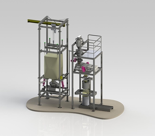 噸袋卸料站是用來實現袋裝散料的卸料功能,為半自動設備,其工作原理及操作流程為: